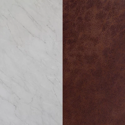 - The thick MDF shelf has a white marble laminate finish to display all of your decor with style.