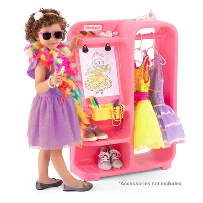 The Dress-Up and Design Fashion Closet gives little fashionistas and budding clothing designers a space to create their own designs and hold all their favorite dress up clothing and accessories.This colorful, durable storage closet with accessory shelves and stand up easel provides plenty of room for dress-up shoes and clothes, a holder for creative supplies, and easel for kids to attach drawings. Parents will love the stress-free 5 minute assembly and easy cleaning. Designed and made in the USA.