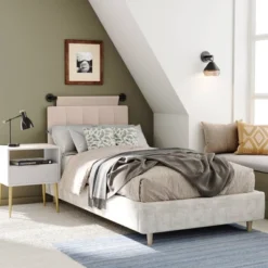 Form meets function in the clean, simple lines of this full size lofted bed frame with a built-in desk tucked behind the ladder. Perfect for children and teens this space saving design provides a designated play or study area without taking up any additional floor space. The open area beneath the lofted bed adds additional room for stuffed animals or a small dresser. Safety and durability are top priorities in any household and this lifted bed won’t disappoint. The wooden slats are securely joined with wood screws and wood dowels allowing this sturdy bed to accommodate up to 300 lbs. static weight. Protective dual guardrails ensure that sleepers stay put while they dream. Supportive wooden slats, designed to use 6″ – 8″ mattresses, are securely attached to the siderails with wood screws for a safe sleeping environment.Available in 2 finishes and easily assembled, this lifted bunk bed will blend seamlessly in any decor and wipes clean with a dry cloth. Expertly packaged in 2 separate boxes, this tall loft bed will be a welcome addition to your home.