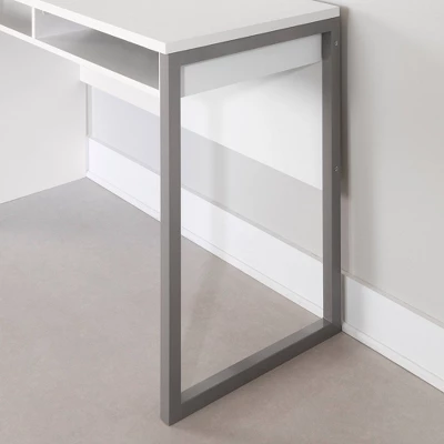 - A CONTEMPORARY-STYLE DESK: This trendy desk will be your best friend in motivating your child to get that homework done. The asymmetrical, open design – with its metal frame on one side and impeccable finish from all angles – will enhance the bedroom or playroom decor.