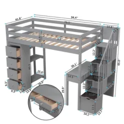Twin Size Wooden Loft Bed With Storage Drawers, Desk And Shelves – ModernLuxe