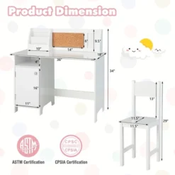 Costway Kids Desk And Chair Set Study Writing Workstation With Bookshelf & Bulletin Board
