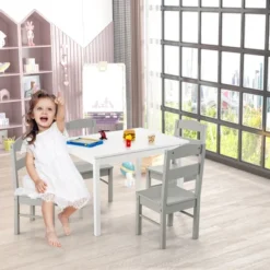 Costway Kids 5 Piece Table & Chair Set Wooden Children Activity Playroom Furniture Gift